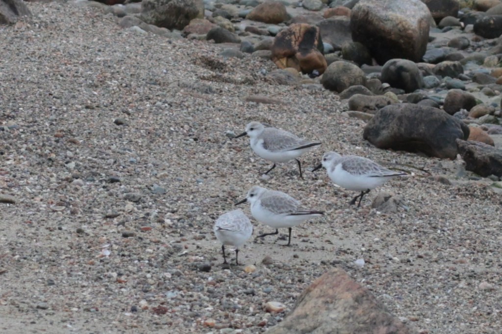 These long billed hunks were braving the cold alongside some puffy Sanderling (Calidris alba). DUNL01.
