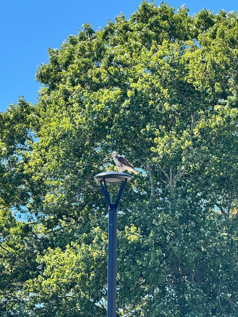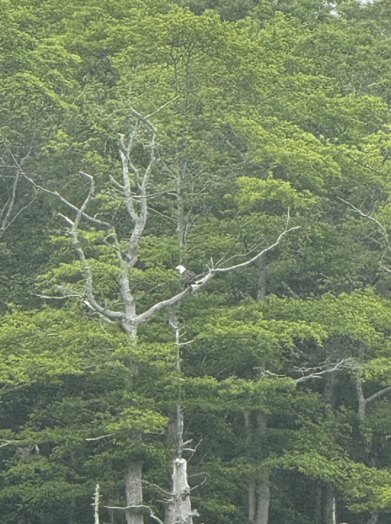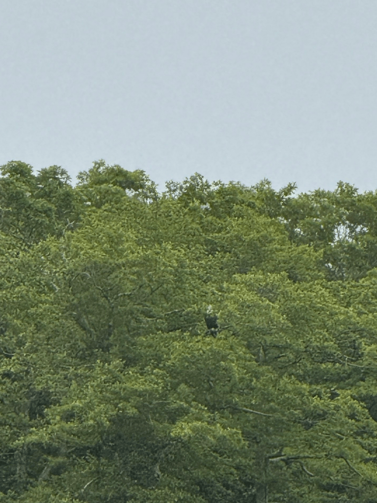 The first Eagle of Fall 2025 was the evening of September 2. It glid in lazily and was harassed by 11 Osprey after it landed across from the Observation Deck. They had a good argument. BAEA09.