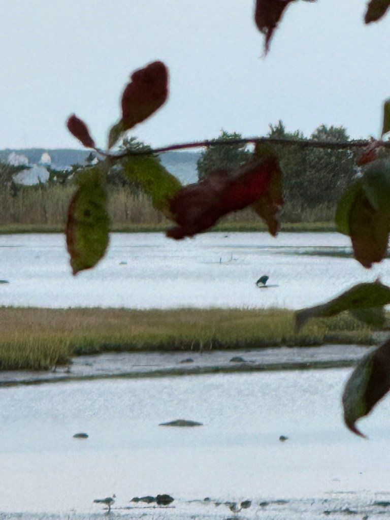 The next day, the same Eagle was back at the Marsh. A month later, August 23, an Eagle was alone across from the Deck but it took off quickly towards the ocean. Apparently it was a big loop because shortly after the Eagle returned and at least 10 Osprey took flight making a racket while chasing the Eagle Northwest. Caught the audio. BAEA07.
